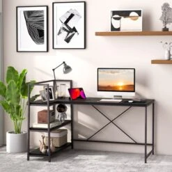 Tangkula Trestle Computer Desk Indoor Office Workstation For Home Office With 2-Tier Storage Shelves