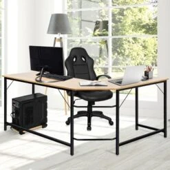 Tangkula Gaming Desk Dual Monitor Mount Ergonomic Y Shaped Computer Desk W/Cup Holder Headphone Hook