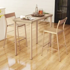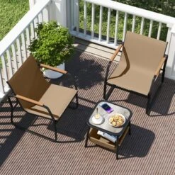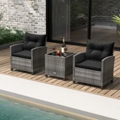 Tangkula 3 Piece Rocking Bistro Set Patio Furniture Set W/ 2 Rocking Chairs & Glass-Top Coffee Table