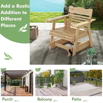 - Selected Fir Wood: The burr-free and solid fir wood makes this outdoor glider chair stable to sturdily support 330 lbs weight capacity and long-lasting to ensure a long outdoor lifespan. And the natural color adds a rustic addition to different places, such as the porch, balcony and patio, etc.