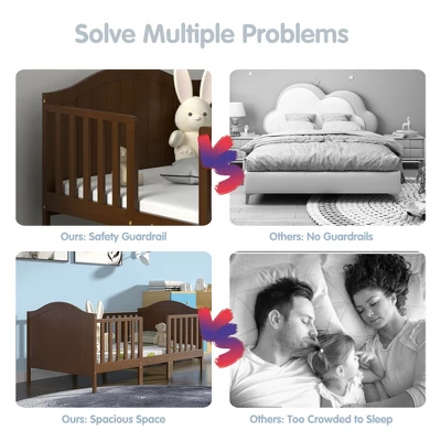 - 2-in-1 Toddler Bed: This 2 in 1 kids crib could be easily converted from a toddler bed into 2 chairs, which would be a practical kids furniture in your home. Besides, this convertible kids furniture is suitable for growing babies, which can meet kinds of different ages and accompany their growth.