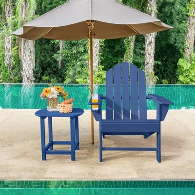 This folding Adirondack chair with side table is both comfortable and convenient to use!Boasting the ergonomic backrest, wide armrests and oversized seat, the Adirondack chair is cozy to sit on. At the same time, the sturdy triangular structure supports 330 lbs for the whole family to use. As for convenience, the practical side table and built-in cup holder allow you to reach items easily. Likewise, the folding chair makes the movement and storage easier. Furthermore, you do not need to spend too much time on staining or waterproofing because of the weather resistant HDPE material.