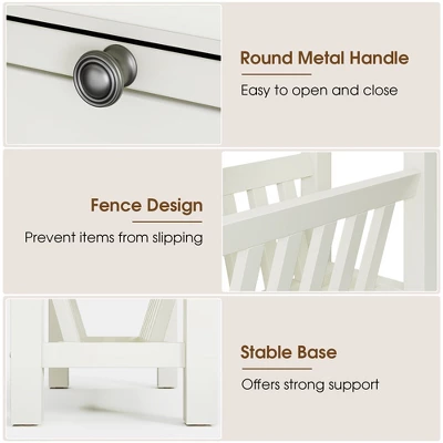 - Different Storage Space for You: Place a lamp on the compact tabletop or use it to keep your glasses within reach. The pull-out tray also extends your top space for a cup of drinks. Plus,the bottom shelf with fence design efficiently prevents items from slipping while providing extra storage space for your books,files and so on.