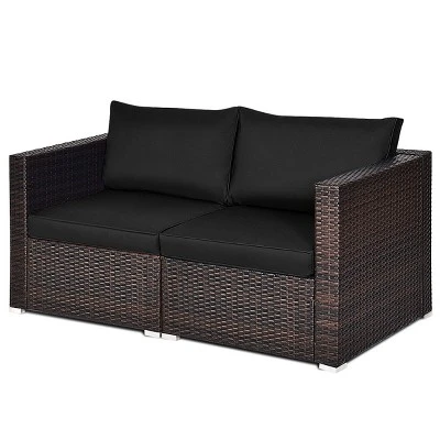 Our rattan corner sofa set is made of premium PE rattan and steel frame, which will afford the test of time and ensure long-lasting service. Equipped with premium aluminium feet, the bottom rattan of corner sofa and your floor is protected from scratching effectively. The corner sofa set also attaches with cushions that have highly resilient and good air permeability, which can provide the best comfortable experience. Zipper design allows you to separate the cover and to clean it easily. Designed with concise and modern style, two corner sofas are great to be used separately or as complement for multi-piece wicker furniture.