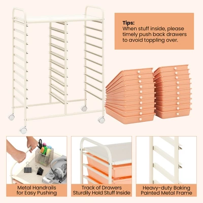Tangkula 20-Drawer Rolling Storage Cart Art Craft Organizer Cart Mobile Utility Storage Cart With Removable Drawers & Lockable Wheels Orange