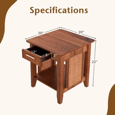 Tangkula 2PCS Boho Style Nightstand 3-Tier Sofa Side End Table W/ Drawer & Shelf Walnut