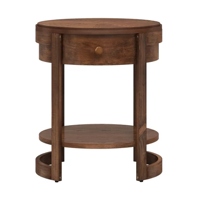 Step into classic elegance with this round side table. Featuring a wood-grained surface, it effortlessly complements any decoration style. This versatile piece offers ample storage options with a wide tabletop, spacious drawer, and lower shelf. Therefore, you can keep everything organized and perfectly avoid chaos. Crafted from quality boards and sturdy solid wood, it can support up to 276 lbs with stability and strength in mind. Transition this table seamlessly from a nightstand to a sofa side table, perfect for any room in your home.