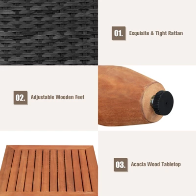 - Solid Wood Frame: The patio furniture set frame is made of natural acacia wood, which is solid and hard, giving you strong support. It is also long-lasting and supports for long lasting use. Additionally, adjustable feet keep the bistro set balanced on uneven ground, improving safety and stability.