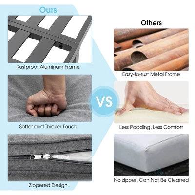 Tangkula 3PCS Patio Furniture Set Aluminum Lounge Adjust Back Recliner Sofa Table Cushion