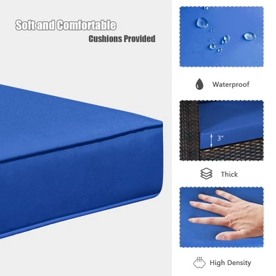 This outdoor wicker sofa set is perfect for having nice outdoor time with family or good friends. Combined with superior rattan and acacia wood, this outdoor furniture set has excellent weather resistance and extremely long service life. Stable structure and thoughtful ergonomic design brings you a nice seating experience. Meanwhile, the soft and thick cushions filled with high-density sponge won’t collapse after long-term use. With zipper design, you can clean the cover conveniently. Besides patio, it is also suitable for your backyard, balcony, garden and even living room. This practical conversation furniture is a quite good choice for you. Do not hesitate to buy it!