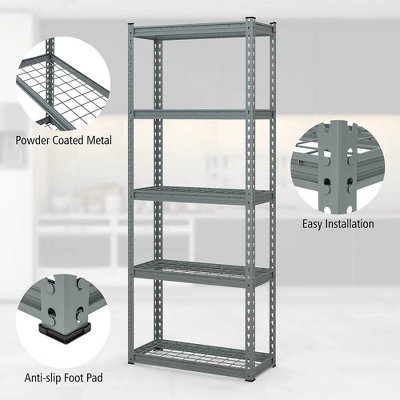 - Premium Material: Crafted from high-quality powder coated metal, our 5-tier storage shelf guarantees durability and reliability for long-term use. Additionally, the powder-coated surface not only adds resistant to water and rust but also extend the lifespan of the standing shelf unit.