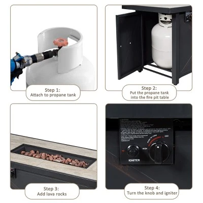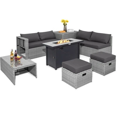 Tangkula 9 PCS Patio Furniture Set With 42″ 60,000 BTU Fire Pit Outdoor Space-Saving Sectional Sofa Set With Storage Box Black/Gray/Navy/Red/Turquoise/Off White