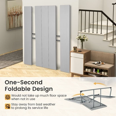 A Versatile and Convenient Outdoor Seating Solution for All Your Gatherings!Our folding picnic table set includes a rectangular table and 2 benches. The table measures 72″ x 29″ x 29″ (L x W x H), and the bench measures 72″ x 11.5″ x 18″ (L x W x H), which can comfortably accommodate up to 8 people. In contrast to other wooden tables or metal tables, our HDPE tabletop is fade-resistant, weather-resistant, crack-resistant, and ultraviolet-resistant, lasting for years to come. And the heavy-duty powder-coated metal frame ensures good sturdiness and stability. More than that, this table set can be easily folded and stored away, saving valuable space when not in use.