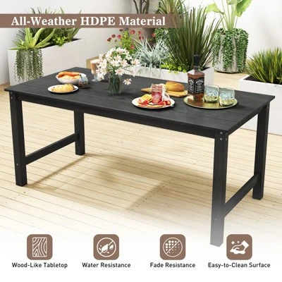 - Selected HDPE Material: Crafted with high-quality HDPE material, this patio dining table offers exceptional weather and fade resistance, combining unmatched durability with stylish allure. The wood-like tabletop adds a touch of sophistication, which is also easy to clean for time-saving.