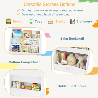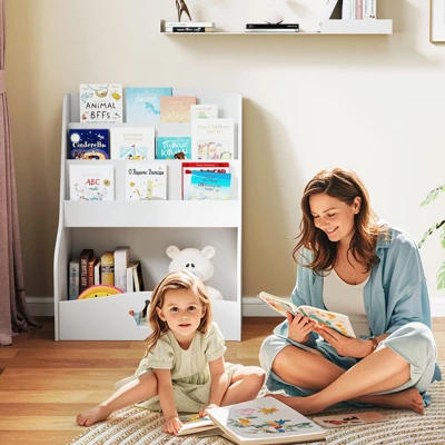 Tangkula Kids Bookshelf 4-Tier Wooden Bookcase Toy Storage Organizer Montessori Bookshelf
