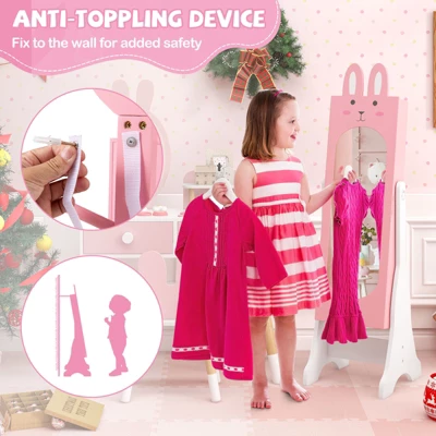- A Space-Saving Storage Solution: With 2-in-1 multifunctional design, this kids jewelry cabinet blends a full-body mirror and jewelry storage into a single unit.It’s an excellent choice for compact spaces as well as a great gift idea for your little one, suitable for birthday, Christmas, children’s day and more.