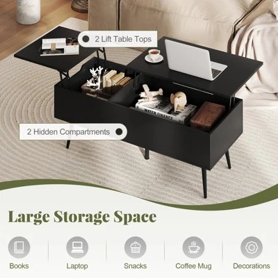 Transform your living room with our chic lift-top coffee table! Designed to blend functionality with style, this must-have centerpiece features a smooth, silent lift mechanism and a dual compartment for tucking away everything from remote controls to magazines. Craving comfort? With a simple lift, use it for dining or as a laptop desk without leaving your couch. Built on 5 sturdy metal legs with non-slip pads, it ensures excellent stability and scratch-free floors, maintaining both elegance and practicality. Plus, its mid-century charm with an elegant wood grain finish will upgrade your space instantly. Make your space smart, sleek, and clutter-free today!
