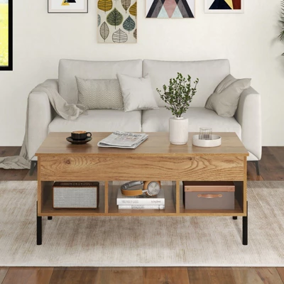 - Multifunctional Lift Top Table: This center table with storage can be widely used as coffee table, cocktail table and storage table. Besides adding storage space, the lift tabletop will be elevated to a proper height of 23.5” and you can also use it as a dining table or work table.