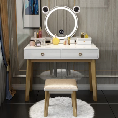 Tangkula Makeup Dressing Vanity Table Set W/ Touch Screen Mirror