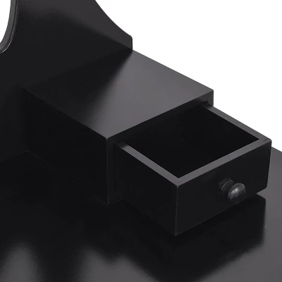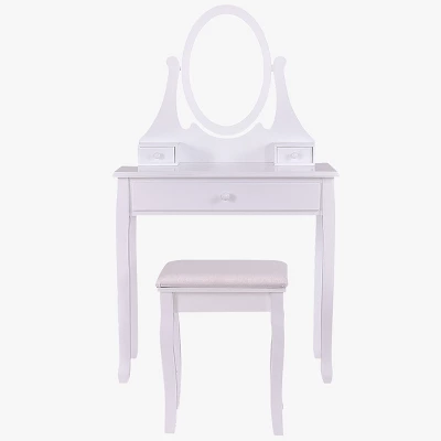 Tangkula Mirrored Dressing Table Wooden Vanity Makeup Unit W/ Cushioned Stool