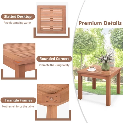 - Spacious Slatted Tabletop: Thanks to the slatted surface, the square end table ideally prevents water accumulation. Meanwhile, the table provides ample space for your snacks, drinks, or books, making it an ideal addition to your outdoor relaxation space.