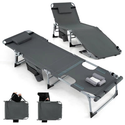 - [Instant Relaxation, No Assembly Required]: Designed for leisure seekers, this folding tanning chair is ready to use in a snap – no assembly needed. Simply unfold and start unwinding in your favorite outdoor spots like the patio, balcony, beach, or poolside. The quick adjustment mechanism lets you effortlessly find your perfect lounging position for maximum comfort.