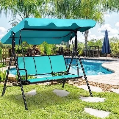 Enjoy the wonderful weather with your friends and family by lounging on our new 3 person canopy swing chair. The frame is made of long-lasting powder coated steel with a water resistant polyester canopy for extra shade. Spacious seat allows 3 people sitting on and sturdy base ensures stability. Arm rests on each side, which ensure the safety. It will be a good addition to your home.