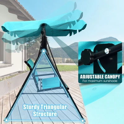 - 【Quality Details】: Our patio swing is designed with a long-lasting triangular frame, which increases the stability and safety of the swing. This shade swing is also equipped with 4 plastic non-slip feet, which makes it safe to use even in rainy weather and can prevent the floor from being scratched.