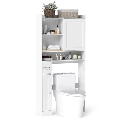 - Versatile Storage Options: Equipped with 2 cabinets and a middle open cube, the above-toilet organizer provides neatly holds your bathroom essentials. Plus, the top tier features edge guards to securely hold less used items, and the toilet paper holder keep tissues within reach.