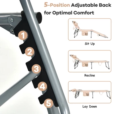 - 5 Adjustable Positions & Ergonomic Backrest: Designed with adjustable locking system, the lounge chair can be adjusted to 5 comfortable positions according to your needs. You can sit up, recline or lay flat to rest, sleep, relax, or exercise. With ergonomic backrest, the chaise lounge reduces your muscle tension and stress, perfect to balance between firmness and softness.
