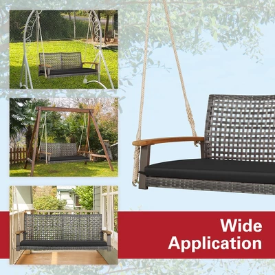- Perfect for 2 Persons: The deepened seat offers ample space for up to 2 people to swing or relax together. Besides,the 2-seat porch swing with stylish mix gray PE rattan will add a sense of elegance to your indoor and outdoor places,which also fits well with a wooden or steel swing stand.