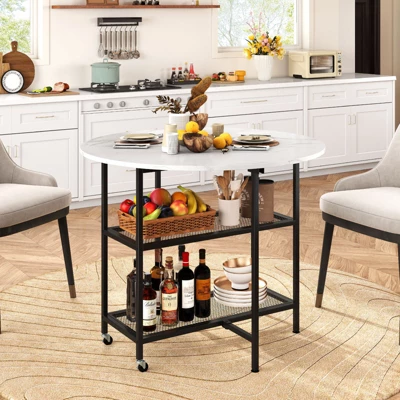 Tangkula Round Outdoor Dining Table For 4 People 36 Inch Acacia Wood Patio Table For Yard