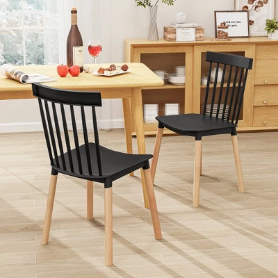 Sit down on our Windsor dining chairs to enjoy meals and socializing!!!Supported by high-quality beech wood legs, our dining chairs keep reliably sturdy and steady for long-lasting sitting. You can use the chairs in kitchens, dining rooms, restaurants, etc. The spindle backrest and curved seat offer you a comfortable sitting experience. The Windsor chairs are equipped with rounded corners and splinter-free edges for higher security. Additionally, our chairs are crafted with reinforced structure and anti-slip foot pads to add more stability to give you peace of mind.