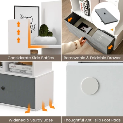 As a bookshelf, it boasts a large storage ability for various books. There are 7 open compartments with side protective baffles so that all books can be placed orderly and safely. Besides, the practical drawer provides extra room for small items. You do not need to worry a lot about the safety of the kids since this freestanding bookshelf can be fixed to the wall with the anti-toppling device. Furthermore, the creative tree shape design renders the home office bookcase attractive and unique. Apart from a freestanding bookcase, it is also a display rack or storage shelf, which is suitable for various places.