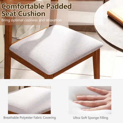 - Comfortable Padding: The upholstered dining chairs adopt comfortable padded seat cushions, bringing optimal coziness and relaxation. They are covered with breathable linen fabric, which enhances airflow while providing a gentle skin touch.